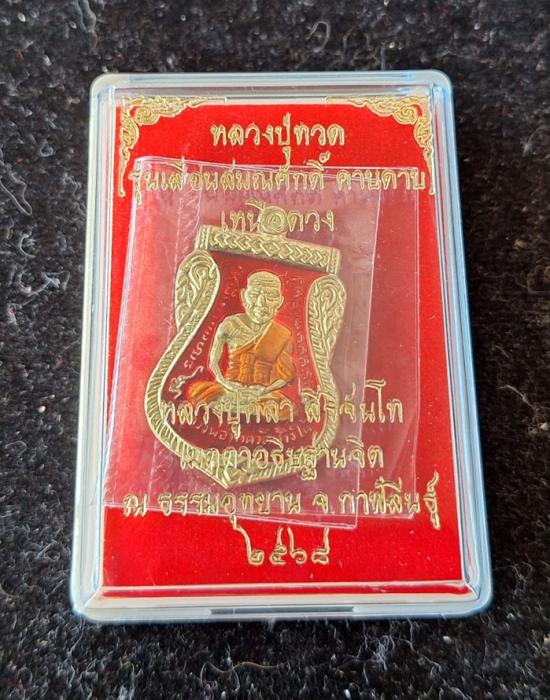 วัดใจ หลวงปู่ทวด หลวงปู่ศิลา เมตตาอธิษฐานจิต รุ่นเลื่อนสมณศักดิ์ เหนือดวง เนื้อทองทิพย์ ลงยา No.136 |