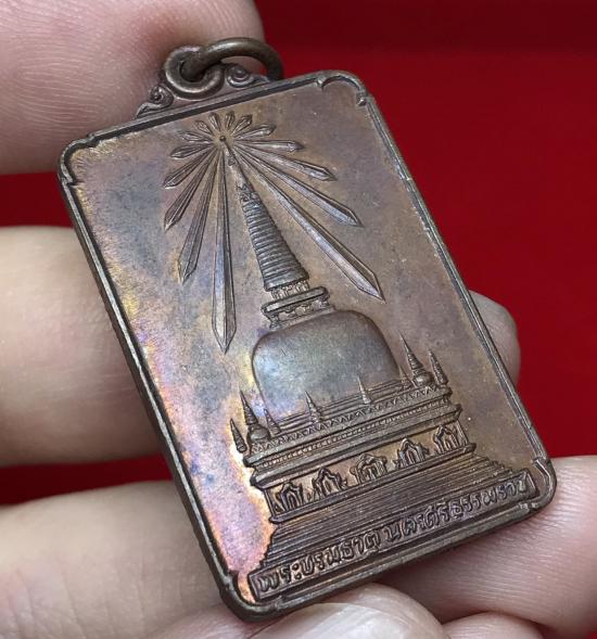 เหรียญพระบรมธาตุนครศรีธรรมราช หลังพระพุทธมิ่งเมืองทักษิณ ในหลวงร.9 เสด็จพระราชดำเนินเททอง ปี 22 เนื้อทองแดงออกรุ้ง (พล.ต.ต. ขุนพันธ์รักษ์ราชเดช เป็นเจ้าพิธี) |