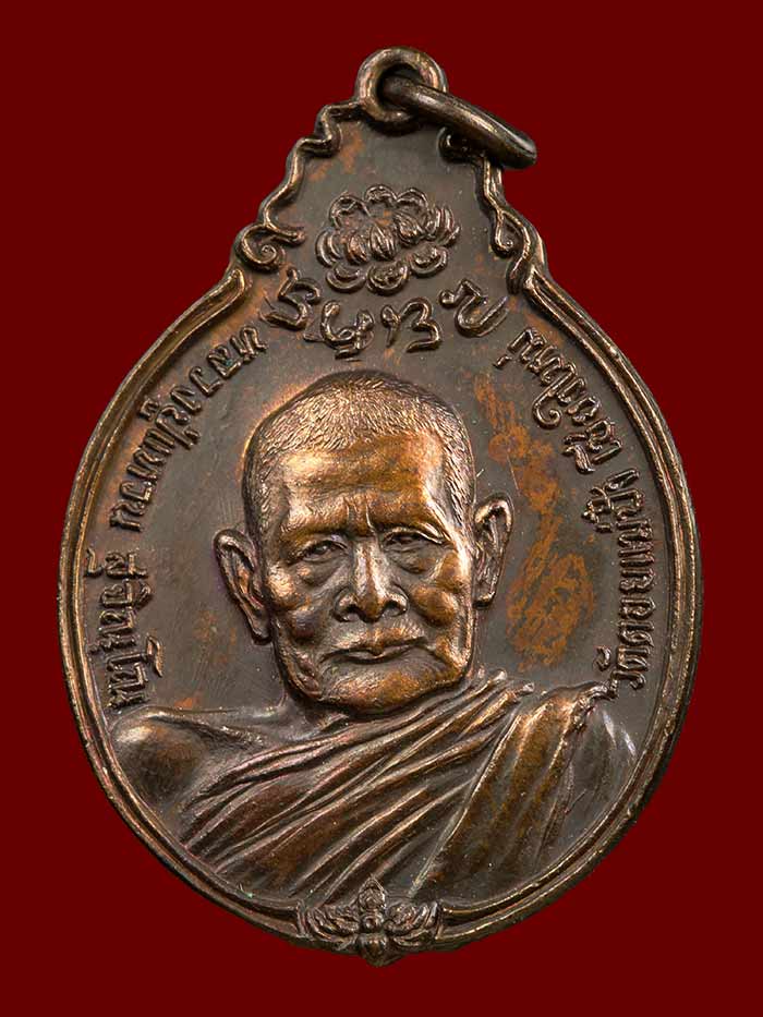 เหรียญรุ่นสร้างโรงพยาบาล หลวงปู่แหวน วัดดอยแม่ปั๋ง พิมพ์หลังภปร.(ใหญ่) เนื้อทองแดง ปี 2521 |