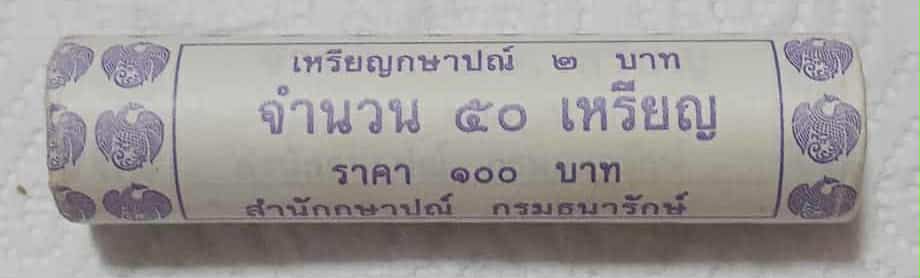 เหรียญ 2 บาท หมุนเวียนสีเงินปีแรก ในสมัยรัชกาลที่ 9 พ.ศ.2548 ไม่ผ่านการใช้งาน UNC บรรจุแบบหลอด 1 หลอด มี จำนวน 50 เหรียญ หลอดสวยกริป หลอดไม่แตกไม่หักครับ |