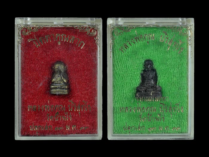 รูปหล่อเหมือนนั่งสมาธิเล็ก + พระปิดตาคูณลาภ รุ่น แผ่เมตตา ( เนื้อนวโลหะ ก้นอุดเงิน บรรจุตะกรุด ) พ.ศ.2533 ( กล่องเดิม ) ** 3 ** |