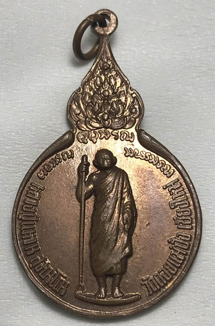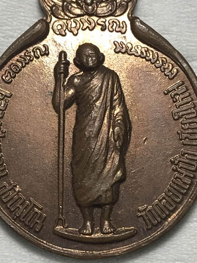 เหรียญยืนถือไม้เท้า หลัง ภปร.(นิยม) หลวงปู่แหวน สุจิณฺโณ วัดดอยแม่ปั๋ง ปี2519 จ.เชียงใหม่