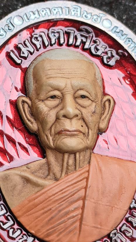 เหรียญ"เมตตาศิษย์"ที่ระลึกครบ๗รอบ หลวงปู่บุญมา โชติธัมโม วัดเขาแก้วทอง จ.ปราจีนบุรี เนื้อนวะโลหะ คุ้ยพื้นลงยาแดง หน้ากากเพ้นท์ หลังหลวงพ่อโสธร หมายเลข ๓๙ พร้อมกล่องกำมะหยี่ พระสวยมากคับ |