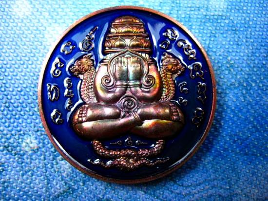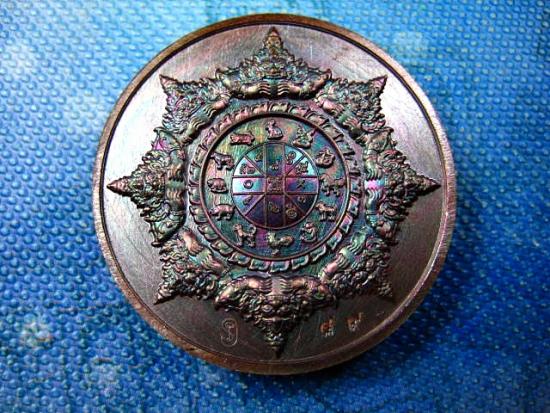 เหรียญปิดตาพังพะกาฬ รุ่นเหนือดวง พระอาจารย์ประสูติ วัดในเตา จ. ตรัง เนื้อ ทองแดงผิวรุ้งลงยาสีน้ำเงิน (---A61---) |