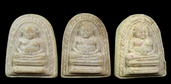 เคาะเดียวแดง (รับพระ 3 องค์)พระสังกัจจายน์ วัดพระพุทธบาท สระบุรี ปี 2520 เนื้อผงน้ำมัน |