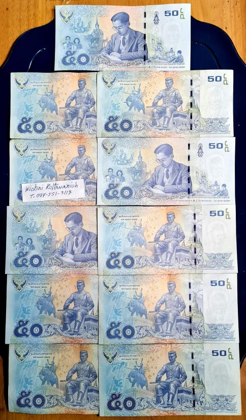 ธนบัตร ร 9 ชนิดราคา 50 บาท แบบ 16 และ 16.5 ผ่านใช้สภาพสวย เลขกระจก ทุกใบ จำนวน 11 ใบ |