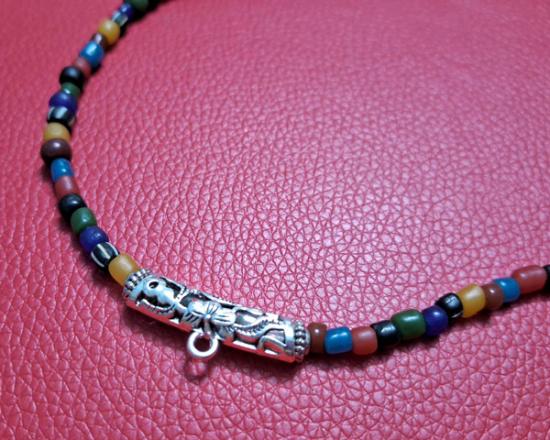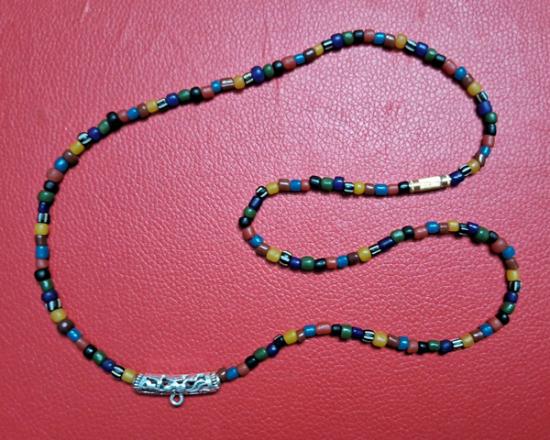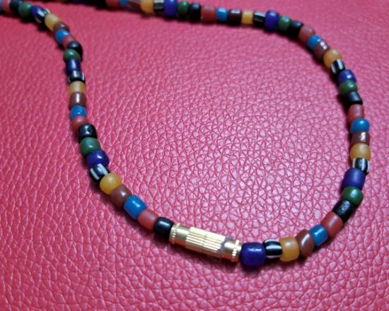 สร้อยคอลูกปัดทราวดี ลูกปัดโบราณสวยๆ ความยาว 24 นิ้ว สวมหัวได้หรือหมุนเกลียวทองเหลืองถอดออกก็ได้ สามารถห้อยพระได้ 1 องค์ (กท.45) |