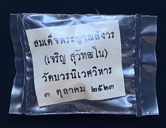 พระปิดตายันต์ดวงเล็ก ปี2523 สมเด็จพระญาณสังวร (เจริญ) วัดบวรนิเวศ_(เนื้อผงธูป_ซีลถุงเดิม_มีใบโพย)_ |