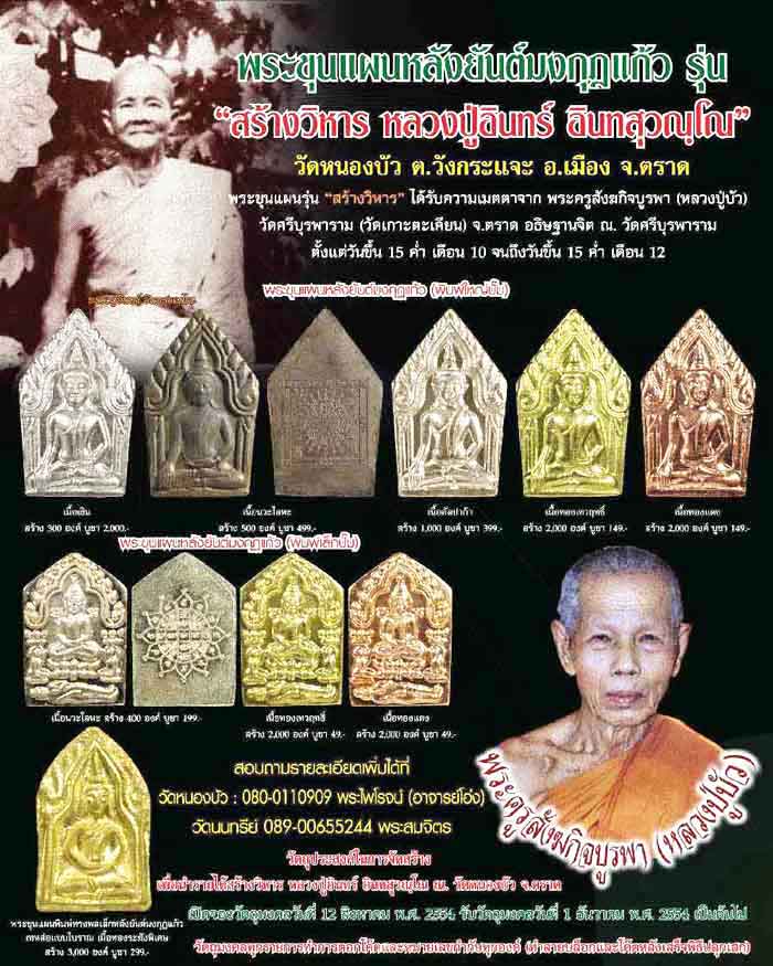 วัตถุประสงค์ : สมทบทุนสร้าง วิหารหลวงปู่อินทร์ อินทสุวณฺโน วัดหนองบัว จ.ตราด |