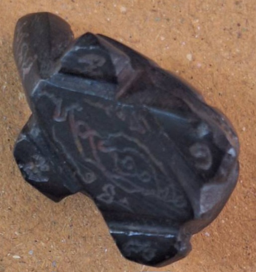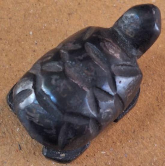แร่เหล็กน้ำพี้ แกะสลักเปนเต่า มีจารยันต์ ขนาดหัวหาง 1นิ้ว ไม่ทราบที่