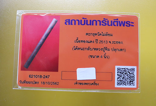 "เคาะเดียว" ตะกรุดทองแดง 4 นิ้ว หลวงปู่ทิม วัดละหารไร่ปลุกเสก ออกวัดไผ่ล้อม ปี 2513 สวยๆ พร้อมบัตรG-pra #4 |