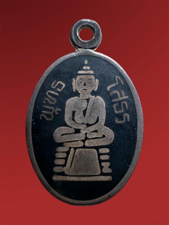 เหรียญเม็ดแตง หลวงพ่อโสธร แปดริ้ว เนื้อเงินลงถม |