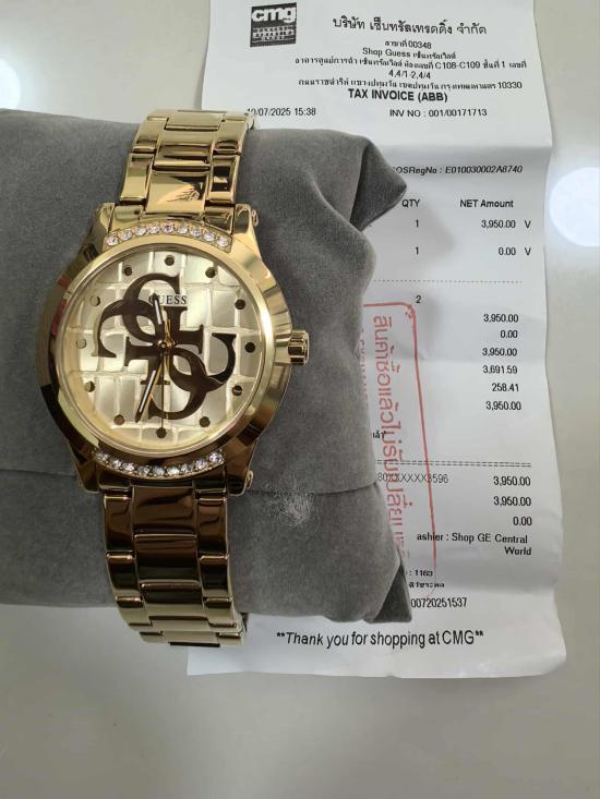 นาฬิกาอัตโนมัติ GUESS ชุบทอง พร้อมกล่องและใบรับประกันถึงเดือน 9/01/2026 ใช้ไม่มากตัวเรือนสวย ราคาซื้อจากห้าง 3,950 บาท เคาะเดียว