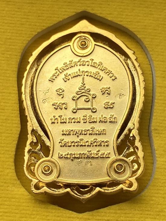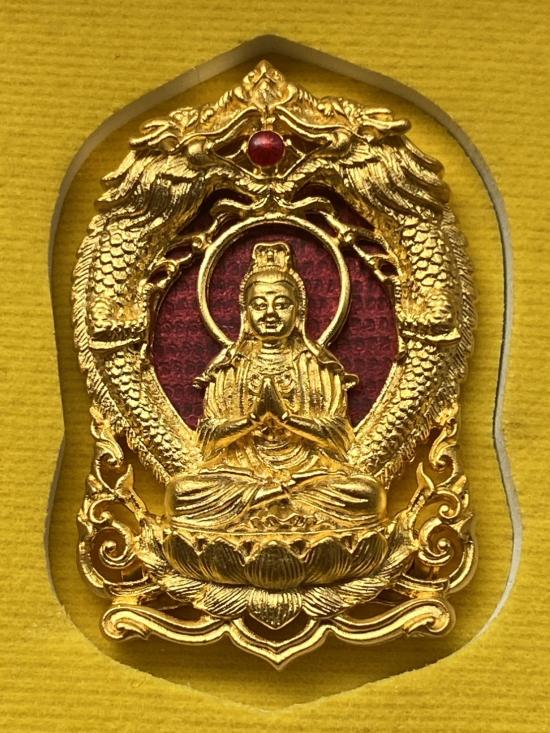 เคาะเดียวแดง เจ้าแม่กวนอิม รุ่น ทรงประทานพร เลข93 เนื้อ ชุบทองลงยาแดง |