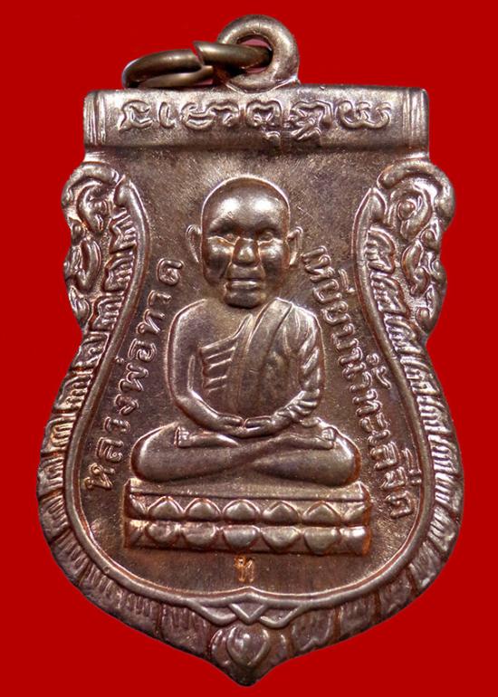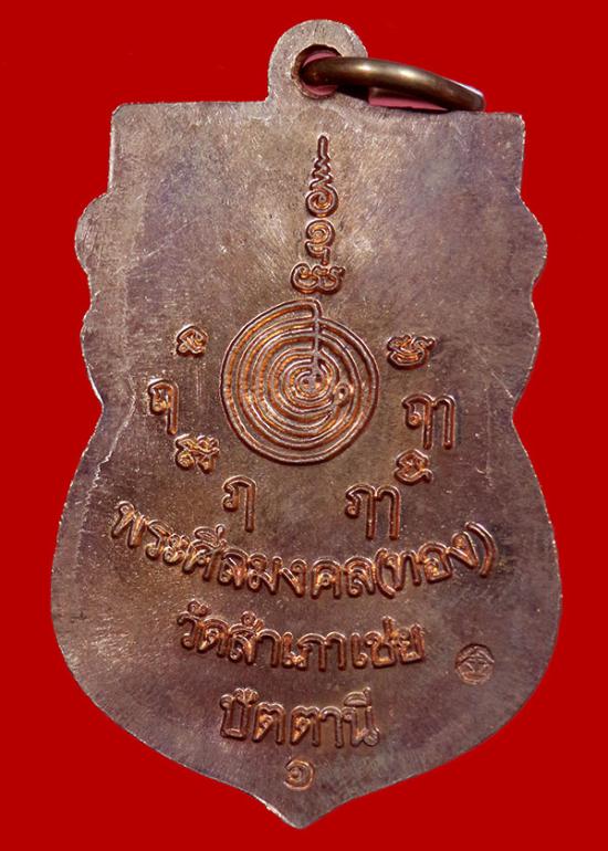 เหรียญเสมาหัวโตหลวงปู่ทวด พระอาจารย์ทอง รุ่น "สรงน้ำมงคล"ปี 39 ฉลองอายุ 88 ปี ด้านหลังปั๊มยันต์พระมหามงกุุฏครอบดวงกำเนิด |