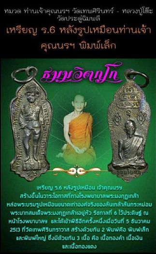 - เหรียญ ร.6 หลังรูปเหมือน สร้างขึ้นในวาระโอกาสที่ทางโรงพยาบาลพระมงกุฎเกล้า หล่อพระบรมรูปเหมือนขนาดเท่าองค์จริงของล้นเกล้าล้นกระหม่อม พระบาทสมเด็จพระมงกุฎเกล้าเอยู่ห้ว รัชกาลที่ 6 ไว้ประดิษฐ์ ณ หน้าโรงพยาบาลฯ และได้เข้าพิธีอีกครั้งหนึ่งเมื่อวันที่ 5 ธันวาคม 2513 ที่วัดเทพศิรินทราวาส สร้างด้วยกัน 2 พิมพ์คือ พิมพ์เล็ก และพิมพ์ใหญ่ ซึ่งมีด้วยกัน 3 เนื้อ คือ เนื้อทองคำ เนื้อเงิน และเนื้อทองแดง องค์ที่ลงนี้เป็นพิมพ์เล็ก เนื้อทองแดงครับ |