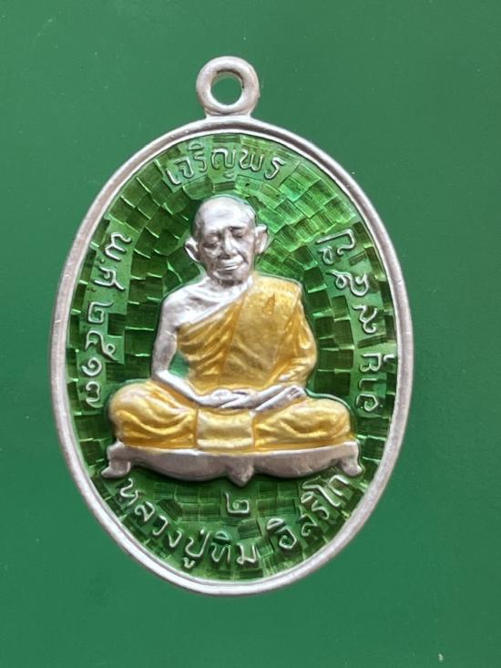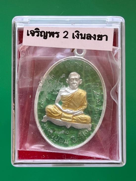 เหรียญเจริญพร 2 เนื้อเงินลงยาเขียว สวยๆ หมายเลข 1711 เคาะเดียว