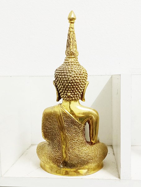 พระพุทธรูปล้านช้าง เนื้อโลหะ ขนาดเกือบ 5 นิ้ว สูง 9 นิ้ว ใต้ฐานบรรจุ เหรียญครบรอบ 80 ปี รุ่นรอดตาย ปี พ.ศ.2550 เนื้อทองแดง หลวงพ่อลออ ฐานวโร วัดหนองหลวง ปลุกเสก |