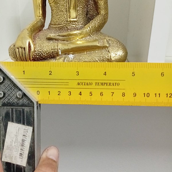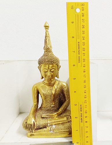 พระพุทธรูปล้านช้าง เนื้อโลหะ ขนาดเกือบ 5 นิ้ว สูง 9 นิ้ว ใต้ฐานบรรจุ เหรียญครบรอบ 80 ปี รุ่นรอดตาย ปี พ.ศ.2550 เนื้อทองแดง หลวงพ่อลออ |