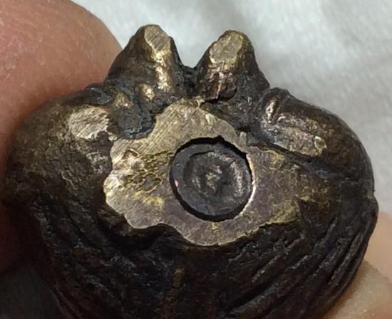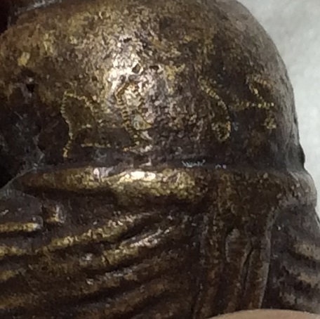 ลูกอมพระราหูอมจันทร์หล่อโบราณ อุดเม็ดกริ่ง เนื้อทองเหลือง จารเครื่อง ไม่ทราบที่ ราคาเบามากครับ |
