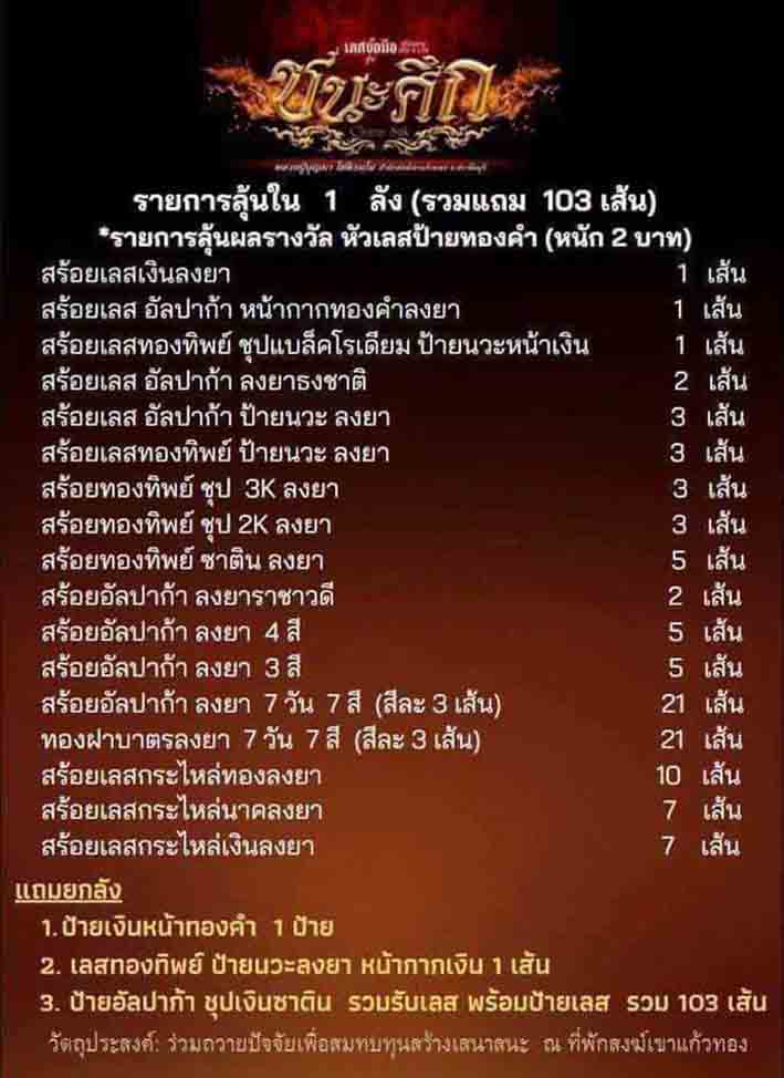 เลสพร้อมสายหนัก4บาท 2เส้น หลวงปู่บุญมา โชติธมุโม จ.ปราจีนบุรี รุ่นชนะศึก ปี 2564 ซีลเดิม ไปลุ้นรายการพิเศษเอง ทีเดียวแดง (1) |