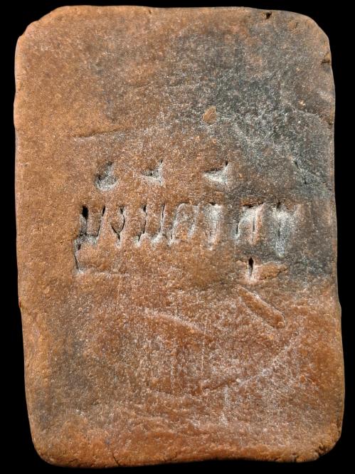พิมพ์ฤาษีท่องสวรรค์ หลวงพ่อฤาษีลิงดำ ปี2531 เนื้อดินเผา ด้านหลังปั้ม มั่งมีศรีสุข |