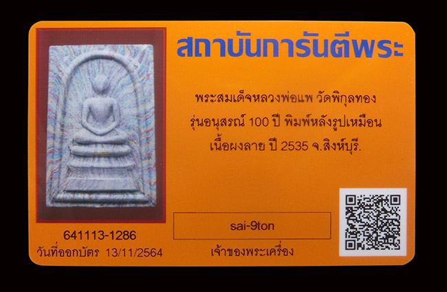 สมเด็จหลังรูปเหมือน รุ่น.100 ปี เนื้อลายหลวงพ่อแพ .....................700