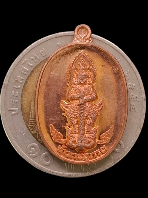 เหรียญเม็ดแตง ท้าวเวสสุวรรณยันต์สวน หลวงปู่แผ้ว วัดรางหมัน เนื้อทองแดง ปี 63 |