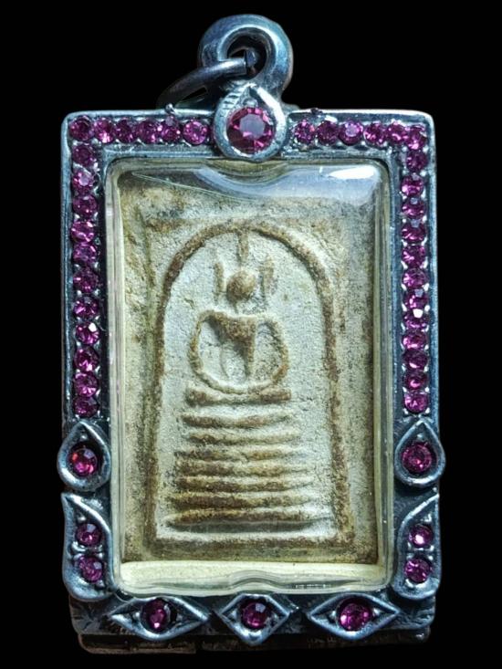 พระสมเด็จ7ชั้น กรอบเม็ดพลอยสีชมพู เคาะเดียว |
