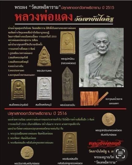 สมเด็จเสดังคมุนี หลวงพ่อแดง วัดเขาบันไดอิฐ "ปลุกเสกออกวัดเทพธิดาราม ปี 2515 |