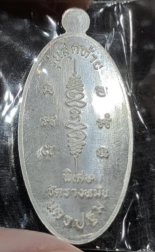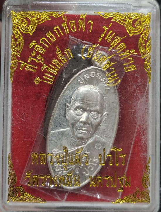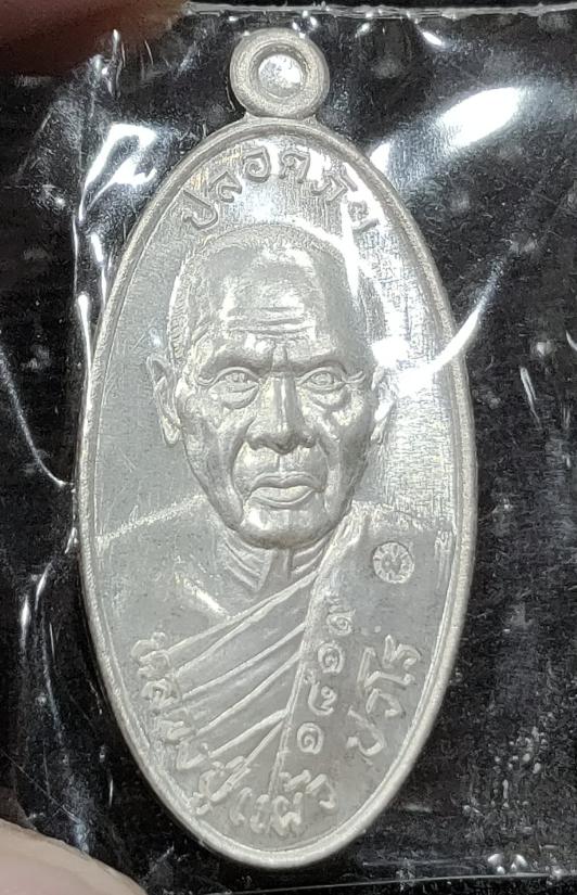ใบขี้เหล็กรุ่นสุดท้ายปี 2556 พิมพ์เล็ก เนื้อเงิน เลข1819 หลวงปู่แผ้ว ปวโร วัดรางหมัน