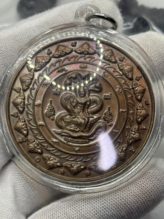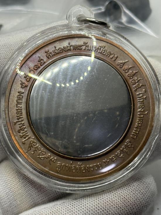 เหรียญคันฉ่องผ่าตะวันเหนือดวง พิมพ์ใหญ่ ขนาด 4.9 ซม. วัดพุทไธศวรรย์ เนื้อทองแดง สวยๆ เลี่ยมพร้อมแขวน 1