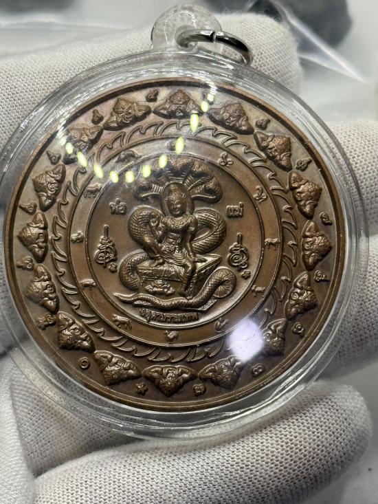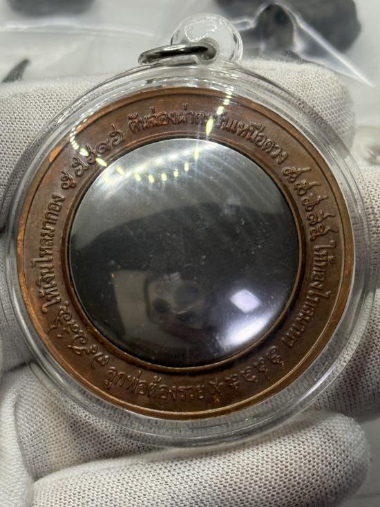 เหรียญคันฉ่องผ่าตะวันเหนือดวง พิมพ์ใหญ่ ขนาด 4.9 ซม. วัดพุทไธศวรรย์ เนื้อทองแดง สวยๆ เลี่ยมพร้อมแขวน 2