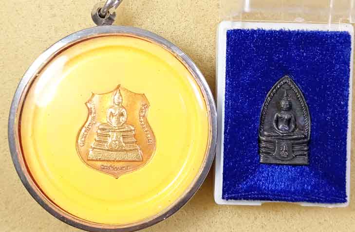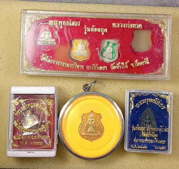 หลวงพ่อโสธร หลวงพ่อทวด รุ่นย้อนยุค ปี 39 เนื้อเงินลงยา(ขาดเหรียญลป.ทวด 1เหรียญ) +กริ่งหลวงพ่อโสธร เนื้อสามกษัตริย์ ปี49+เหรียญอาร์ม หลวงพ่อโสธรปี38 +เหรียญหลวงปู่โสธร ปี40