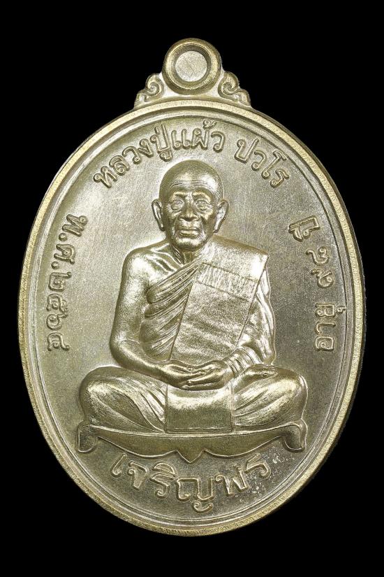 เหรียญเจริญพรล่าง หลวงปู่แผ้ว ปวโร ปี 64 เนื้อชนวน # 1394 พร้อมกล่องเดิมและบัตรGครับ