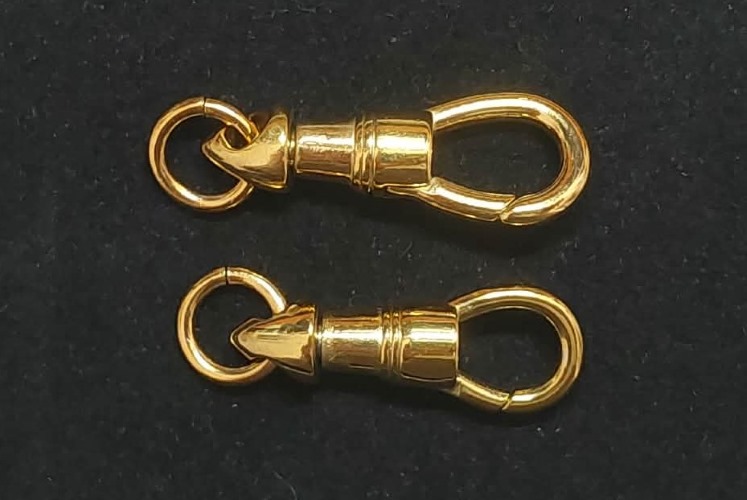 สปริงก้ามปูสแตนเลสเลเซอร์ทองหมุนได้ จำนวน 2 อัน ขนาดไม่รวมห่วง 2.6 ซ.ม. และ 2.3 ซ.ม.