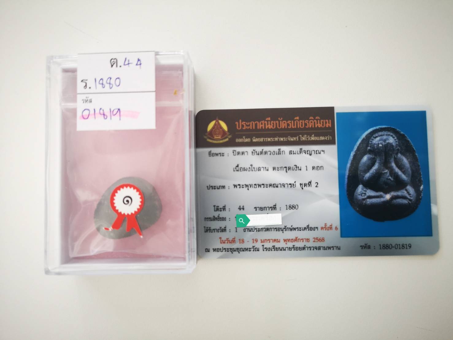 ***ติดรางวัล***พระปิดตายันต์ดวงเล็ก ปี 2523 สมเด็จพระญาณสังวร (เจริญ) วัดบวรนิเวศวิหาร เนื้อผงใบลาน ตะกรุดเงิน ติดรางวัลที่ 1 งานสามพราน <324> |