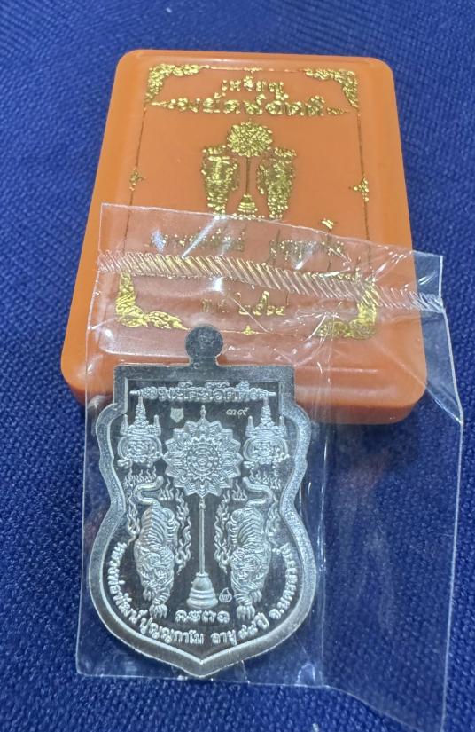 เหรียญพยัคฆ์อัคคี หลวงพ่อพัฒน์ วัดห้วยด้วน เนื้อเงินลงยา 3 สี หมายเลข39 ไม่ผ่านการใช้งาน