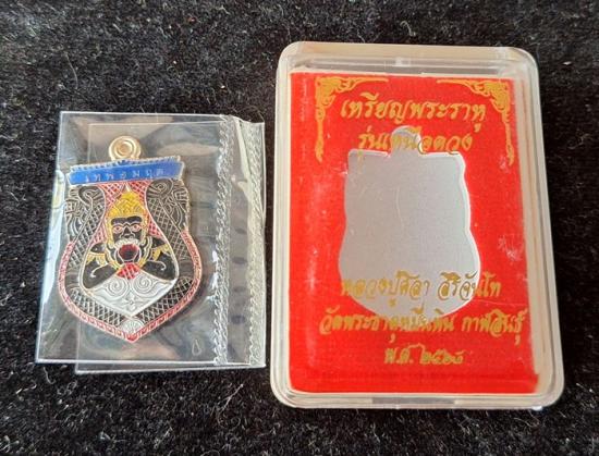 เหรียญพระราหูอมจันทร์ รุ่นเหนือดวง เนื้ออัลปาก้าลงยา ตอกเลข+ตอกโค๊ต พร้อมกล่อง |