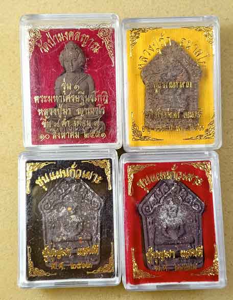 พระเศรษฐีนวโกฏิ เนื้อผงไม้ยอ ปี52 + หลวงปู่มา ญาณวโร วัดป่ามงคลญาณ อุบลราชธานี+พระผงหลวงปู่ถ้า วัดป่าบ้านบ่งเลิศ + ขุนแผนกั่วเผาะ ปู่บุญมา แสนดีสุรินทร์ ปี62 2 องค์ |