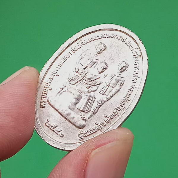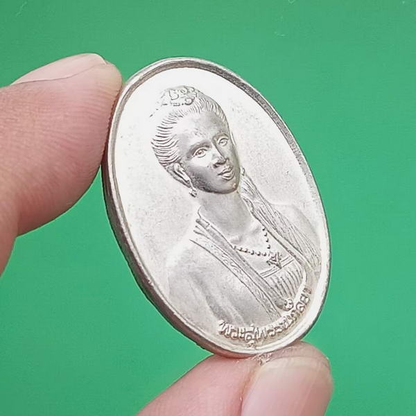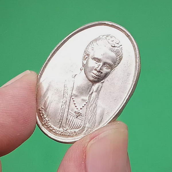 เหรียญพระสุพรรณกัลยา หลังพระบรมรูปพระสุพรรณกัลยา พระนเรศวร พระเอกาทศรถ เนื้อกะไหล่เงิน ปี 2541 อ.สามชุก วัดลาดสิงห์ จ.สุพรรณบุรี