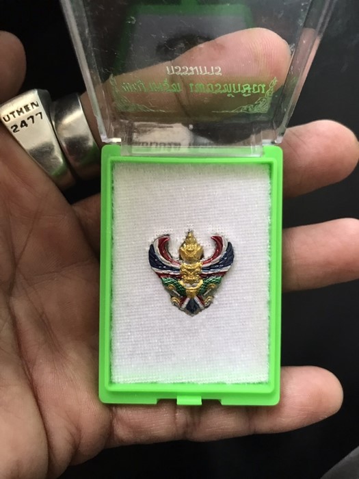 พญาครุฑ เพชรทักษิณเนื้อเงินยวงลงยา กรรมการ พ่อท่านเขียว วัดห้วยเงาะ พร้อมกล่องเดิมครับ |
