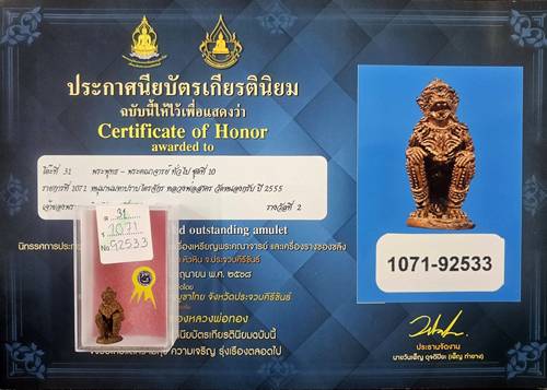 หนุมานมหาปราบไตรจักร หลวงพ่อสาคร วัดหนองกรับ เนื้อทองแดง ปี2555 ติดรางวัลที่2