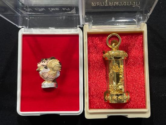 !!!!แพ็กคู่ !!!!! ไก่ 3 k รุ่นเงินไหลมา หมายเลข 2579 + ตะกรุดนางกวัก หมายเลข 9869 หลวงปู่ศิลา สิริจันโท พร้อมกล่อง |