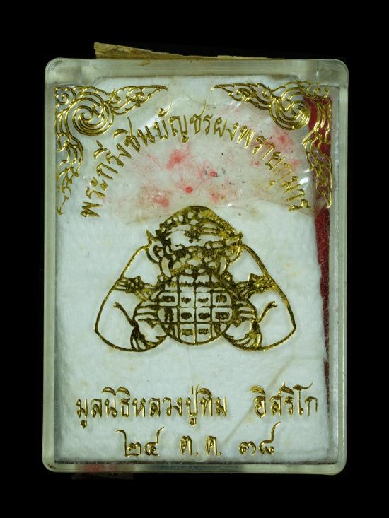 พระกริ่งชินบัญชร เนื้อผงพรายกุมาร มูลนิธิหลวงปู่ทิม พ.ศ.2538 พระกริ่งชินบัญชร เนื้อผงพรายกุมาร มูลนิธิหลวงปู่ทิม สร้าง2538 พระกริ่งผงพรายกุมาร คุณชินพรเป็นผู้สร้างๆราวปี ๒๕๓๘ นำผงลูกอม,พระบรรจุกรุที่ชำรุด ,และผงพรายเข้มข้น มากดเป็นองค์พระ หลวงปู่แว่น วัดถ้ำพระสบายเสกเดี่ยว,,หลวงปู่ทองฤทธิ์ อุตตโม กาฬสินธ์เสกเดี่ยวอีกครั้ง ,ก่อนนำไปขอเมตตาหลวงพ่อเหล็ง วัดโคกเพาะ ชลบุรี(ซึ่งถือเป็นอาจารย์หลวงพ่อม่น วัดเนินตามาก)เสกทั้งพรรษา,สุดท้ายนำขึ้นไปบวงสรวงบนปราสาทศรีเทพ จังหวัดเพชรบูรณ์ในช่วงเวลาที่เกิดสุริยคราส,จันทรคราส ...ดังนั้นบางองค์ที่ฐานพระจะปั๋มตรายางหมึกแดงเป็นรูปราหูอมจันทร์ไว้เป็นสัญลักษณ์ (หลายองค์ไม่ได้ปั๊ม,หรือมองไม่เห็น)ประสบการณ์ที่ยืนยันเป็นตัวตนคือ ผู้ที่ได้รับไปถูกยิงที่เพชรบูรณ์ปรากฎปืนยิงไม่ออก,และอีกเหตุการณ์ คุณชินพรนำกริ่งผงแจกในงานศพคุณพ่อ มีทหารที่ได้รับแจกไปคล้องแล้วแคล้วคลาดจากเฮลิคอปเตอร์ตก ...ทั้งๆที่มีรายชื่อต้องขึ้นเครื่องดังกล่าวแต่มีเหตุให้แคล้วคลาดอย่างเหลือเชื่อ |