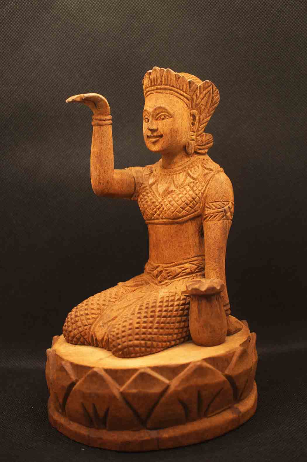 นางกวักแกะ บูชา ขนาด 5 นิ้ว ไม้เทพทาโร หน้าตัก 5 นิ้ว สูง 8 นิ้ว ตอกโค๊ตปีสร้าง 57 + ส + หมายเลข 98 *** จารมือ ใต้ฐาน สร้างน้อยแค่ 105 องค์ *** หลวงพ่อสิน วัดละหารใหญ่ ปี 2557 ( ภาพพระอาจจะเหลืองกว่าอ |