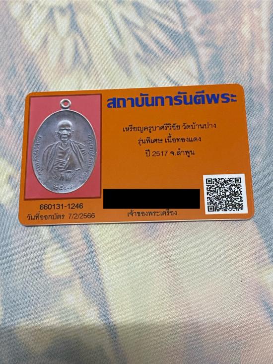 เหรียญครูบาศรีวิชัย วัดบ้านปาง รุ่นพิเศษ เนื้อทองแดง ปี2517 จ.ลำพูน พร้อมบัตรรับรองฯ โอนเงินแล้วแจ้งรายละเอียดการโอนทาง Mailbox ของเวปจี ได้รับแจ้งว่าโอนเงินแล้วจะส่งพระภายใน 3 วันทำการ