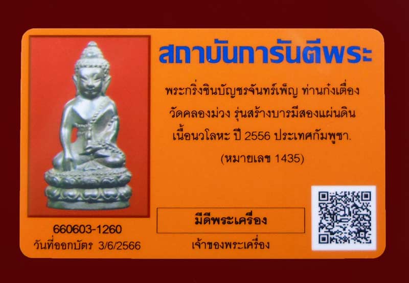 แดงที่เคาะแรก !!! พระกริ่งชินบัญชรจันทร์เพ็ญ เนื้อนวะโลหะ ท่านก๋งเตื่อง เตชปัญโญ มีกล่องเดิม สร้าง 2,500 องค์ + บัตรพระแท้ หมายเลข 1435