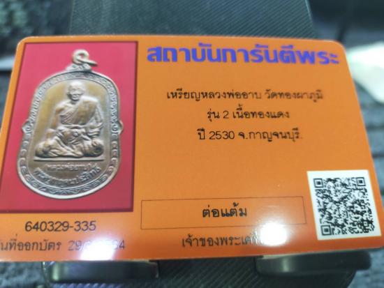 วัดใจ เหรียญ หลวงพ่ออาบ วัดทองผาภูมิ เนื้อทองแดง รุ่น 2 จ. กาญจนบุรี ปี 2530 |