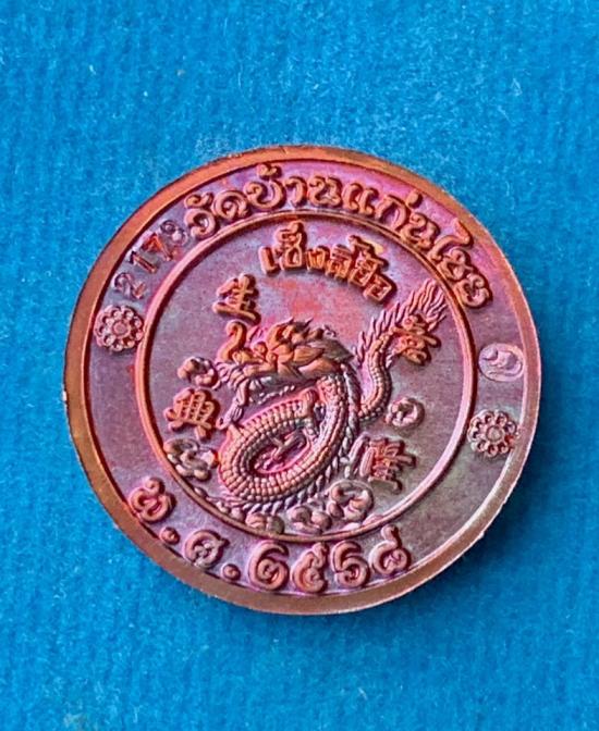 เหรียญโชคดี หลังมังกร ครูบาเกียรติยศ พรหมปัญโญ วัดบ้านแก่นไชย ปี 2568 โชคดีทุกเวลารวยเงินตราทุกนาที เนื้อทองแดงผิวรุ้ง แจกรางวัลชนะเลิศแต่ละรายการ หมายเลข 2178 |